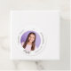 Un fondo blanco clásico, texto negro. Personalice y agregue un nombre, fecha y foto. Atrás: añade tu nota de agradecimiento.