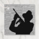 Juego de 12 etiquetas de favor cuadradas con la imagen de una silueta de un gángster con su pistola contra una pared de piedra gris. La parte posterior tiene la imagen de la pared de piedra gris y el texto del personalizable. Vea la colección completa de etiquetas de favores y regalos de los 20 de Roaring en la sección FAVORS de la FIESTA.