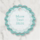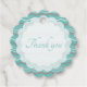 Diseño verde azulado y blanco con formas en mosaico y texto de personalizable en la parte delantera que dice: "Gracias". En el reverso hay más texto que se puede editar o eliminar.