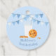 Leche y galletas para el amante de las galletas de chocolate en la familia. Celebre el cumpleaños de su pequeña con nuestras divertidas y festivas galletas y el tema de la leche. Con un vaso alto de leche con una paja y galletas de chocolate. El fondo es azul claro con banderas de fiesta. Personalizable completo. Consulte la papelería de coordinación y los regalos.