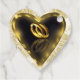 Bonitas etiquetas de regalo de boda que usted puede personalizar por el nombre de la novia y del novio. Estas etiquetas de regalo boda tienen una imagen impresa de una pintura acrílica de dos bandas bodas de oro dentro de un corazón de oro.