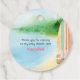 Etiquetas de Baby Shower que puedes personalizar en la parte posterior con tu mensaje de agradecimiento. En la parte delantera hay un divertido juego de palabras que dice "¡Es casi Mai Tai'm pero por ahora relajémonos!" - perfecto para relajarse en los favores del spa, en los cócteles o en los pequeños cócteles para salir cuando te apetece. Ambos lados están decorados con diseños de acuarela con escenas de ensueño en la playa, tablas de surf, accesorios de verano, cócteles y tipografía retro. Tema neutral de género para tu luau, surf o ducha de bebé con temas de playa para niña o bebé.