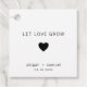 Etiquetas modernas de favores de boda con un diseño mínimo que incluye el mensaje "Dejen crecer el amor". Debajo hay un corazón y sus nombres y fecha, en negro, sobre un fondo blanco. Las fuentes y los colores de fondo pueden cambiarse a los colores que desee. Estas etiquetas simples y contemporáneas son perfectas para la pareja minimalista y le dan un toque personal a sus favoritos.
