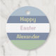 Azul pastel horizontal azul claro, verde claro y polvoriento patrón rayado azul y texto de personalizable: Feliz Pascua. Haga clic en editar para cambiar el texto y el nombre a su gusto,