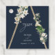 Una bonita pirámide de madera rústica de estilo bohemio con flores de acuarela blanca en cascada por un lado y un fondo azul. Un diseño único que utiliza botánicos de acuarela blancos vintage en una estructura triangular bohemia. Un encantador diseño floral blanco con elementos rústicos y geométricos y una elegante tipografía de escritura. Un elegante diseño de etiquetas de favores de boda con elementos modernos. También hay disponibles invitaciones de boda coincidentes y otros artículos de papelería.