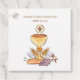 La etiqueta de un partido neutral de género en favor de una Primera Comunión Santa presenta un cáliz dorado, eucaristía con cruz, pan y uvas. Estos son los símbolos de la Comunión. Personalizar según sea necesario.