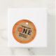 Primer cumpleaños, etiqueta de básquetbol ¡Pónganme en entrenador! Esta etiqueta de favor se crea con una textura de fondo vintage, acentos de básquetbol con "One" en el centro, la "O" se reemplaza por un baloncesto. El Metro-Events Zazzle shop y Metro-Event.com ofrecen suministros adicionales de fiesta.