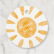 Celebra el primer cumpleaños de tu pequeño sol con este simple pero increíblemente lindo "primer viaje alrededor del sol" fiesta de cumpleaños, ¡gracias regalo y favor! Este diseño presenta un sol acuarela sobre un fondo blanco limpio con texto completamente personalizable.
