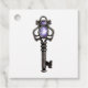 Etiquetas de favor gótico vintage con una llave antigua con una gema de zafiro y un patrón de encaje suave en el reverso.