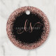 Glam Rosa Gold Purpurina Elegant Monogram Favor Tags Fácilmente personaliza este diseño de moda de etiquetas de moda con elegantes purpurinas con destello de oro rosa sobre un fondo negro. El diseño incluye su monograma manuscrito con remolques de bonito y su nombre.