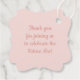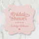 Las elegantes etiquetas personalizadas de los favores de los materiales de ducha de novia incluyen un moderno guión de caligrafía "Bridal Shower" diseño de tipografía con acento cardíaco lindo y forma de borde decorativo. Personaliza con el nombre de la novia y un personalizado gracias por celebrar el mensaje en la parte de atrás. Diseño limpio y sencillo. Cabe destacar que se pueden modificar los tonos dorados subió y rosa pastel claro.