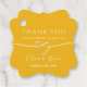 Sencillo, elegante, minimalista, boda de agradecimiento etiqueta con escritura moderna de caligrafía y falso corazón de cuerda dorada.