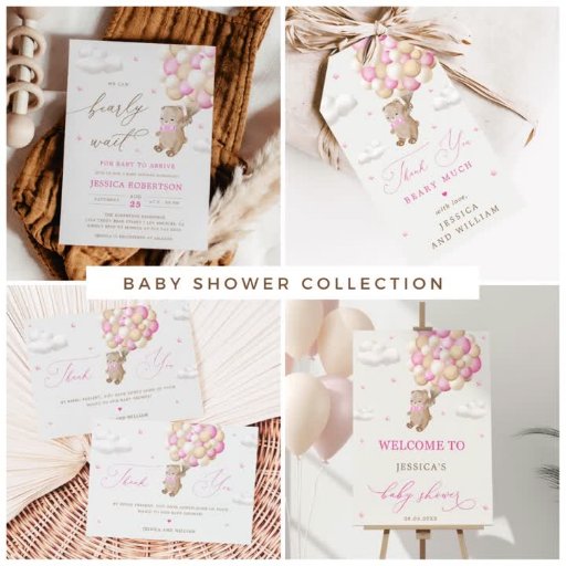 Teddy Bear with Pink Balloons & Beige BackgroundDiseñado por A S