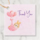Favorecer etiquetas con un ilustracion adorable. Un pequeño conejito de bebés con una pequeña corona dorada. Llevado por globos en una manta rosa de corazón.