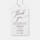 Etiqueta mínima y simple de favores de boda con texto de escritura moderno que dice "gracias" en la parte superior.
