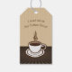 Etiqueta de regalo con taza de café a vapor