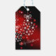 Etiquetas Para Regalos Copos de nieve en un fondo rojo y negro.