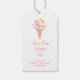 Esta etiqueta de favor de despedida de soltera con tema de helado está decorada con flores de acuarela y un cono de helado.