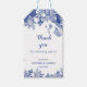 Esta etiqueta de regalo personalizada presenta una ilustración de sauce azul estilo chinoiserie chic de flores de loto elegantes y una tipografía clásica de "gracias", nombre y fecha. ♥ Ver la colección en esta página para encontrar productos que coincidan.