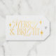 Elegante etiqueta de envolver de regalo de tema navideño con tipografía que dice "alegre y brillante" con estrellas retro alrededor.