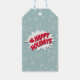 Felices vacaciones ilustracion de estilo cómico con campana de Navidades y decoración de copos de nieve sobre fondo azul