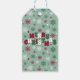 Feliz Navidad diseño de texto colorido con copos de nieve decoración en fondo verde