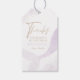 Agradece a sus amigos y familiares por asistir a la fiesta de cumpleaños de su pequeña con esta adorable etiqueta de favores con temática de sirena, que incluye una cola de sirena color morado y detalles de purpurinas.
