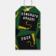 Favoritos de fiesta de graduación creativos y etiquetas de regalo con gorras de graduación negras y doradas. Edite el texto para agregar el nombre del graduado y el año de la clase de graduados.