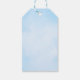 Etiqueta de regalo con una inspiradora cita cristiana que dice: Fe puede mover montañas. Mateo 17:20. Con una imagen de montañas y una cruz con corazón.
