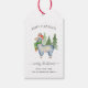 Estas preciosas etiquetas de regalo navideñas cuentan con una llama a la moda, acuarela, con un sombrero de Santa y una bufanda verde de invierno, parados frente a los pinos verdes. El gracioso texto dice "alegres llamadays"