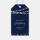 Celebre la temporada con esta elegante etiqueta de regalo para Navidades personalizados. Este diseño presenta el texto de "Feliz Navidad" y un festejo copo de nieve y luces de cuerdas con el logotipo en la parte trasera. Puede personalizar el texto y agregar el logotipo de su empresa. Hay más suministros de negocios de vacaciones disponibles en mi tienda BaraBomStudio.