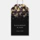 Las etiquetas colgantes de moda para su negocio presentan un fondo negro nítido con un borde superior de luces de cuerda dorada con un efecto bokeh borroso. Personalizar con dos líneas de texto personalizado debajo de blanco. Los respaldos son de color blanco sólido para el texto de su personalizado adicional o el mensaje manuscrito.