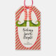 Divertidas piernas de duendes con medias a rayas rojas y marfil y botas verdes con cascabeles y Baking Spirits Bright en letra elegante. Estas etiquetas para regalos son perfectas para tus regalos caseros. ARTÍCULOS coincidentes en nuestra tienda.