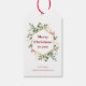 Estas preciosas etiquetas de regalo de vacaciones cuentan con un marco geométrico de oro falso con hojas de oro a juego, verde Navidad elegante y bayas rojas en un fondo blanco moderno. La tipografía de moda, de color rojo profundo y caprichoso dice "Feliz Navidad para ti".