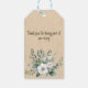 Agrega un toque personal y emotivo a los favores de tu baby shower con esta elegante etiqueta de regalo con tema de libro de cuentos. Con delicada vegetación en acuarela sobre un fondo cálido de pergamino, esta etiqueta dice “Con amor del shower de Alyssa” e incluye la dulce frase “Gracias por ser parte de nuestra historia”. Perfecta para atar a bolsas de favores, pequeños regalos o recuerdos, esta etiqueta complementa hermosamente los temas de baby shower de bosque y neutros. Pre-perforada y fácil de adjuntar, completa la decoración de tu shower con encanto y gratitud.