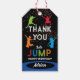 Un diseño colorido de fiesta de cumpleaños con salto en parque de columpios temático para niños con confeti de colores. Un diseño ideal para cualquiera que quiera celebrar su cumpleaños en un parque de columpios y saltar y rebotar. Un diseño perfecto de fiesta de salto en columpio con tipografía e ilustraciones coloridas. Invitación, favores y decoración de cumpleaños temática de columpio a juego.