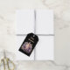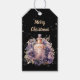 Base negra y etiqueta Nostalgic Merry Christmas. Ilustracion de perfume exclusivo rodeado de flores violetas y cristales de nieve en peligro. La parte posterior de la etiqueta tiene el mismo diseño de perfume con texto de personalizable como a... y de... o lo que te gusta. El texto principal Feliz Navidad también es personalizable. Que tengan una celebración nostálgica de los Navidades de moda o de otro evento.