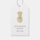 Las etiquetas colgantes de moda para su negocio presentan una piña de Relieve metalizado de oro falsa sobre un fondo blanco crujiente, con dos líneas de texto personalizado debajo de un rico off-black. Los respaldos son de color blanco sólido para el texto de su personalizado adicional o el mensaje manuscrito. Coordina con nuestra suite de oficina Pineapple en cuatro elegantes coloridos.