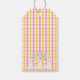 Gingham rosa y amarilla con etiqueta de regalo de flores y conejos