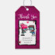 Una etiqueta de regalo de agradecimiento boda con un lindo ilustracion de una pareja zombie, brazos extendiéndose entre sí. Un corazón rosado sobre sus cabezas. Agradable y adorable a la vez que espeluznante y extraño.