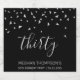Ayúdenla a celebrar su 30 cumpleaños con estilo con este diseño simple pero elegante, con falsos confeti triangular de plata que se mueven sobre la palabra "treinta" con letra de escritura a mano gris claro en un fondo negro. Personalízalo con el nombre del honore en fuente sans serif de color gris claro, junto con la ocasión y la fecha de abajo en un tipo gris claro más pequeño.
