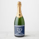 Etiquetas Para Vinos Espumosos Boda Monograma del Ancla del Corazón Azul Náutico