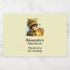 Baby Shower te agradece las etiquetas de las botellas con una linda imagen. Una chica con un traje de abeja crochet y una abeja a su lado. Viendo un frasco de miel.