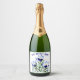 etiquetas de vino espumoso con una imagen de cruces azules y texto que se puede personalizar. La obra original fue pintada por WB con pintura acrílica.