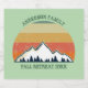 fiesta de reunión familiar personalizado de Guay con etiqueta de vino espumoso para una cabaña de otoño o reunión al aire libre con primos, tías, tíos y abuelos. Celebra personalizando con tu apellido y año en verde alrededor de la hermosa imagen de puesta de sol de otoño sobre las montañas y los árboles. Excelentes etiquetas de vino de camping grupal personalizadas.