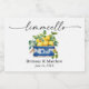 Moderna, Minimalista pero elegante caligrafía Ink Script Watercolor Lemones y vegetación en una Blue Tile Wood Box Limoncello Boda Mini Vinos y Botellas de Champagne