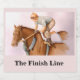 Caballo de carreras y jockey de la línea de fin