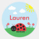 Estos pegatinas cuentan con una linda mariquita sonriente en una colina verde rodeada de flores rosas y rojas. Estos pegatinas son perfectos para etiquetar las pertenencias de su hijo, o pueden ser usados como agradecimientos en favores de fiesta, o incluso etiquetas de regalo (por ejemplo: un regalo de: Lauren).