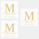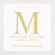 Una etiqueta profesional de negocios con detalles de negocio en el estilo de letra serif profesional de oro sobre fondo blanco. Atención: Los detalles del Relieve metalizado se simulan en la obra. Este producto no contará con ningún relieve ni capa que creen un efecto metalizado.