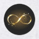 Oro, símbolo de infinito de joyas con estrellas doradas sobre fondo negro. Diseño con estrella dorada.